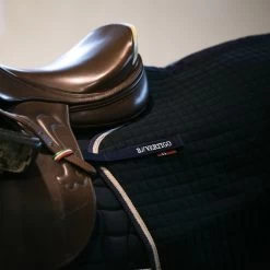 Ride in comfort and style all winter long with this lovely mid-weight exercise rug. A bold, silver-threaded logo emblazons the rear quarter for elegant style. The unique 3-layer fabric of this impeccable exercise rug is bonded to one layer and woven together to create air pockets for warmth. The thermal, breathable rug keeps the horse warm during exercise while allowing moisture to escape.