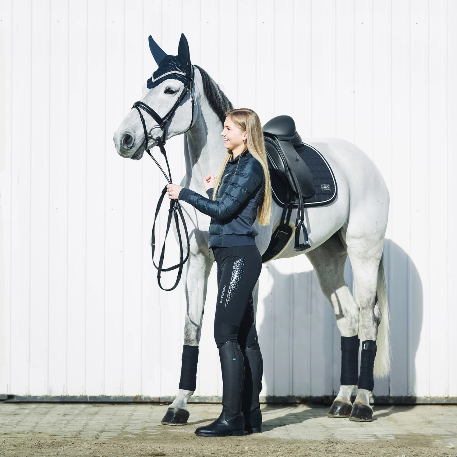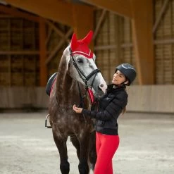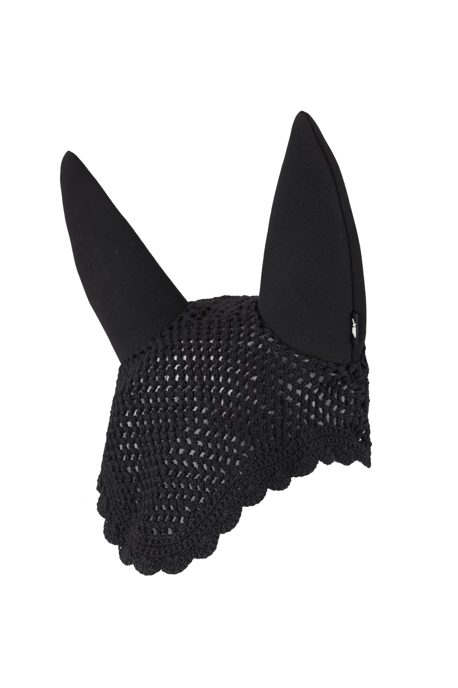 This FEI-approved, hand-knitted crochet style riding hood will look great while keeping crowd noise to a minimum and distractions away. The simple design of this hood is created to look clean and elegant. Soft fabric with a bit of stretch allows for the perfect fit. The ear area is designed with Neoprene for optimum quiet. This hood is ideal for competition when you need to keep your horse focused on his performance.