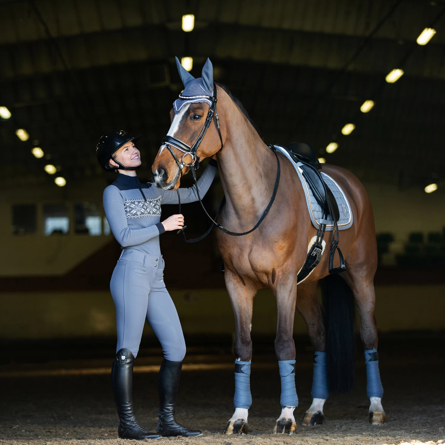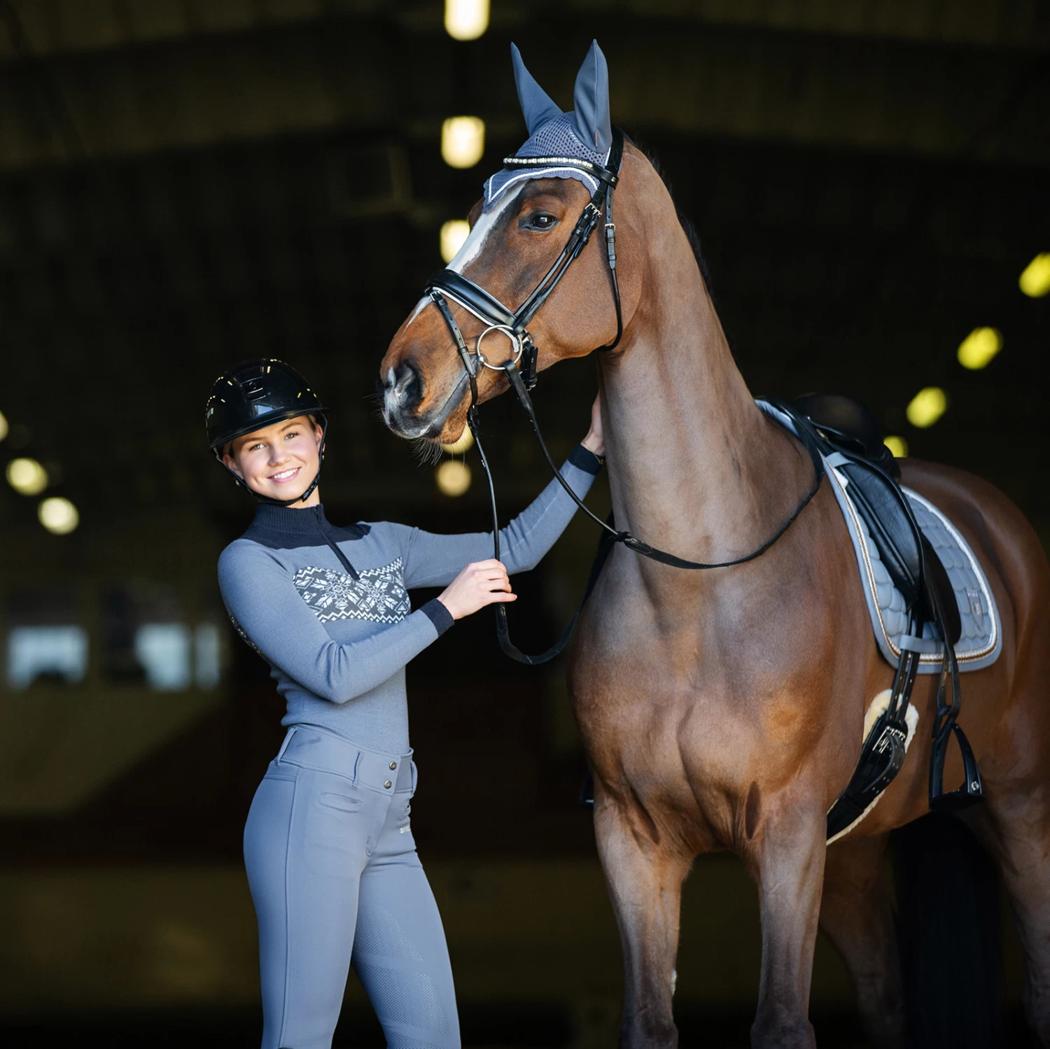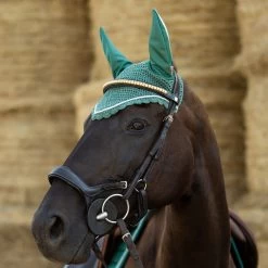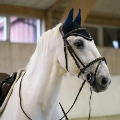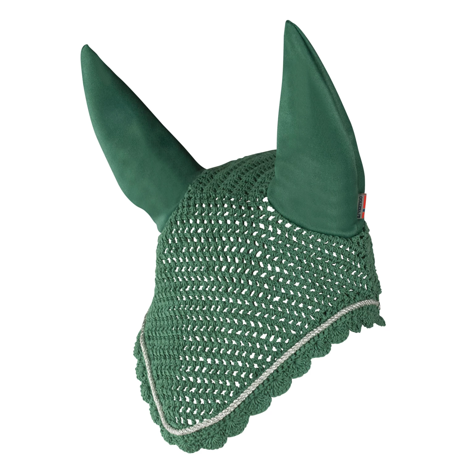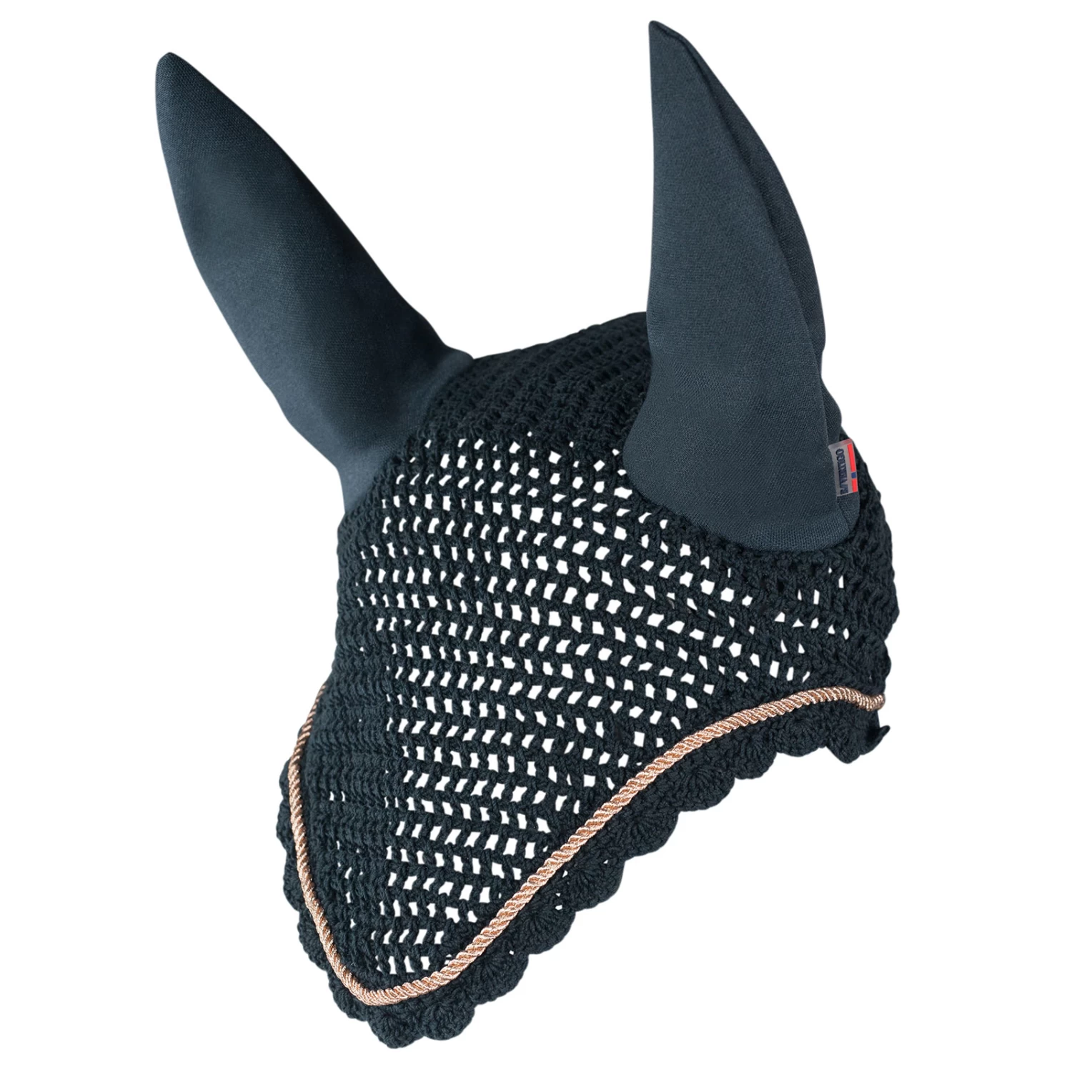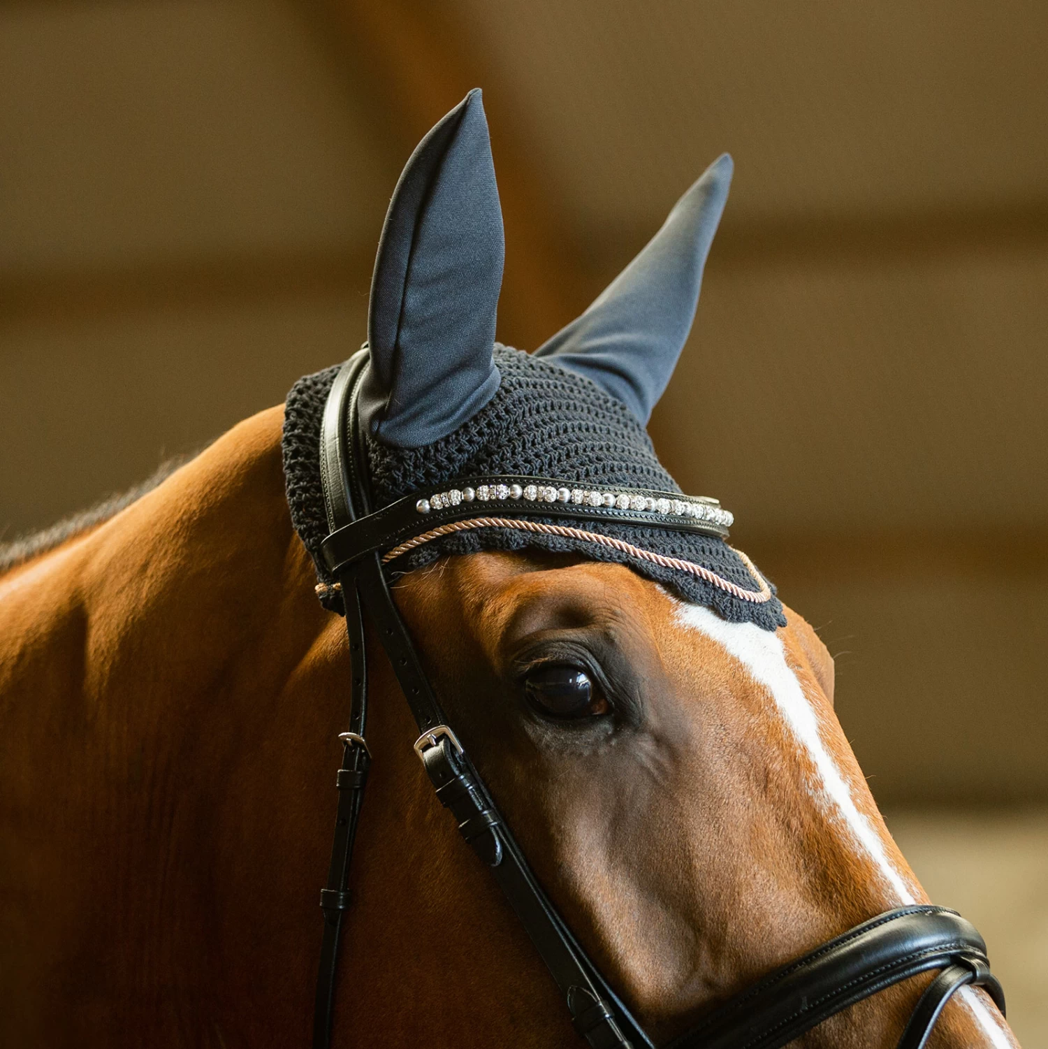 This classically-styled riding hood matches all of the saddle pads of the seasonal B Vertigo collection and is a perfect finishing touch for your pampered star horse. The hand-knitted bonnet is trimmed in elegant cord and will keep your horse’s ears cool.