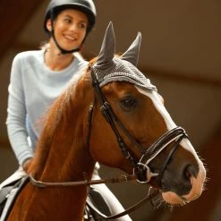 This stylish riding hood will keep flies and crowd noise from bothering your horse so you both can concentrate.