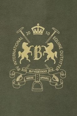 Our B Vertigo Wellington rug is made from soft high quality fleece. Quilted details and gold fittings bring an elegant vibe. The front closure, x-surcingles and tail cord keep this rug in place. The big logo embroidery completes the look. Pair the cooler with our other matching B Vertigo Wellington items for a full outfit!