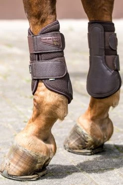 Flexible brush boots in 3D Mesh, with a shock-absorbent and pressure distributing padding to protect the horse’s legs from impact and injury. Highly breathable to prevent over-heating. Strong and reinforced hook-and-loop fasteners provide a comfortable fit. Stylish design with artificial leather over the reinforced zone and the end of the straps. The inside has a Welltex® infused lining to give your horse the best conditions for both performance and recovery. This technology may stimulate blood flow in the area by reflecting far infrared energy and can support the tendons and joints. These all-purpose and easy-to-use boots are suitable for both front and hind legs. To get the best fit, we recommend going up a size for the hind legs.