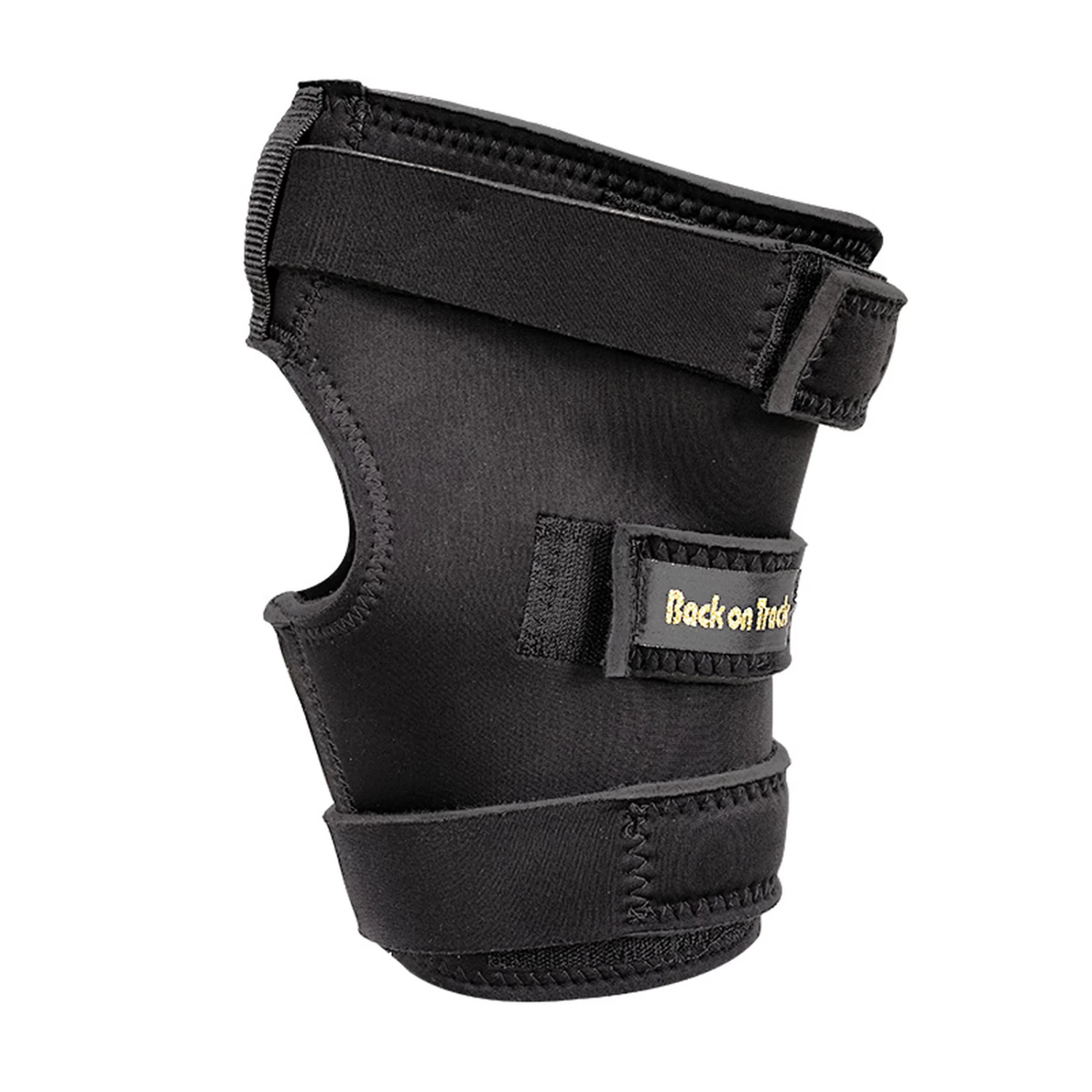Hock brace for right leg hock. Equipped with opening for the hock and three hook-and-loop straps.