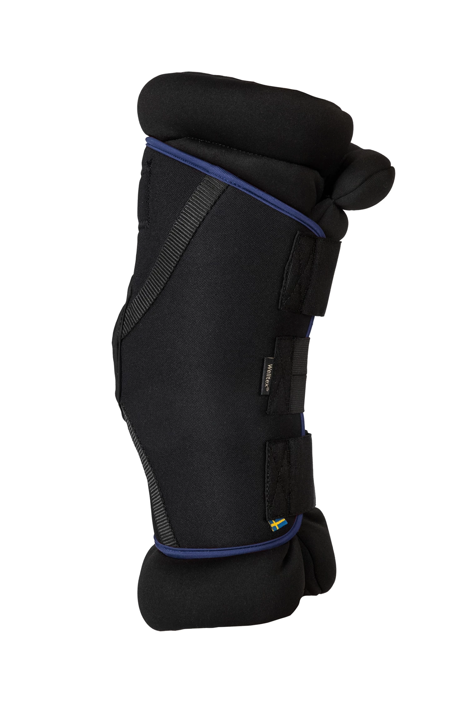 New and updated Deluxe model of Back on Track’s popular Royal Hock Boots! The hock boots consist of two parts, a durable and sturdy outer shell, and a thick inner pad with Welltex® technology. The Royal Deluxe model is anatomically designed to provide an optimal fit around the point of the hock. The outer shell is well-shaped with strategically placed seams to avoid pressure points on the horse’s sensitive tendons. The opening over the point ensures good flexibility and a secure fit. The inner pad goes high up on the leg with a rounded shape to provide the best possible comfort. The pad can easily be removed when washing the boots as they attach to the outer part with a hook and loop fastener. The inner pad has a Welltex® infused lining. The material reflects body heat in the form of far-infrared energy. It can stimulate blood circulation in the area and relieve problems with stiffness, inflammation and osteoarthritis. The boots are equipped with three strong and durable hook and loop straps. The middle-strap has a two-part elastic band to avoid pressure on the joint. The hock boots are suitable for use while resting in the stable or during transport