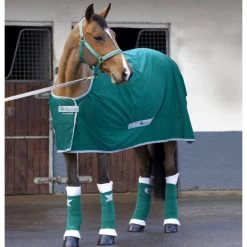 The Shamrock Power is an ideal multi functional blanket. It performs superbly as a sweat blanket, travel blanket and light stable blanket. It is manufactured using two layers of Bucas Stay-Dry fabric. The unique Stay-dry functionality saves time and rug changes and ensures that the horse is always comfortable. The anti bacterial lining helps to keep the rug fresh and in good condition. The Shamrock Power is available in two versions, classic cut and full neck.