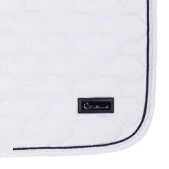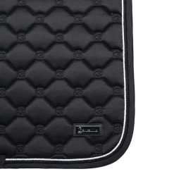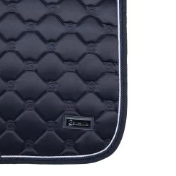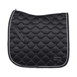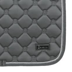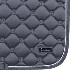 A noble, versatile saddle pad made of high-quality, slightly shiny upper material. Elaborate diamond quilting pattern with integrated Cavallo logo. A small, exclusive Cavallo label in gunmetal optics. The matt silver cord gives the saddle pad a noble look. The quick-drying and moisture-transporting mesh lining is particularly skin-friendly and offers maximum comfort. A shape-retaining padding allows the saddle pad a perfect positioning on the horse back. The upper and lower girth straps can both be fixed with a touch tape fastener.