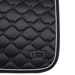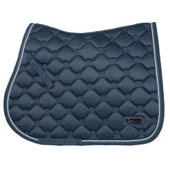 A noble, versatile saddle pad made of high-quality, slightly shiny upper material. Elaborate diamond quilting pattern with integrated Cavallo logo. A small, exclusive Cavallo label in gunmetal optics. The matt silver cord gives the saddle pad a noble look. The quick-drying and moisture-transporting mesh lining is particularly skin-friendly and offers maximum comfort. A shape-retaining padding allows the saddle pad a perfect positioning on the horse back. The upper and lower girth straps can both be fixed with a touch tape fastener.