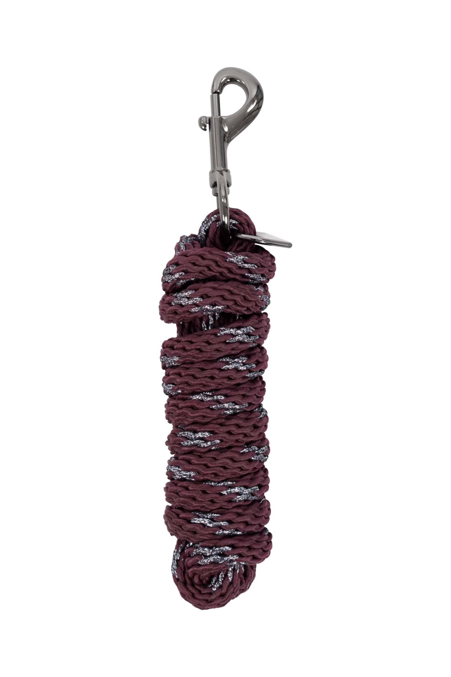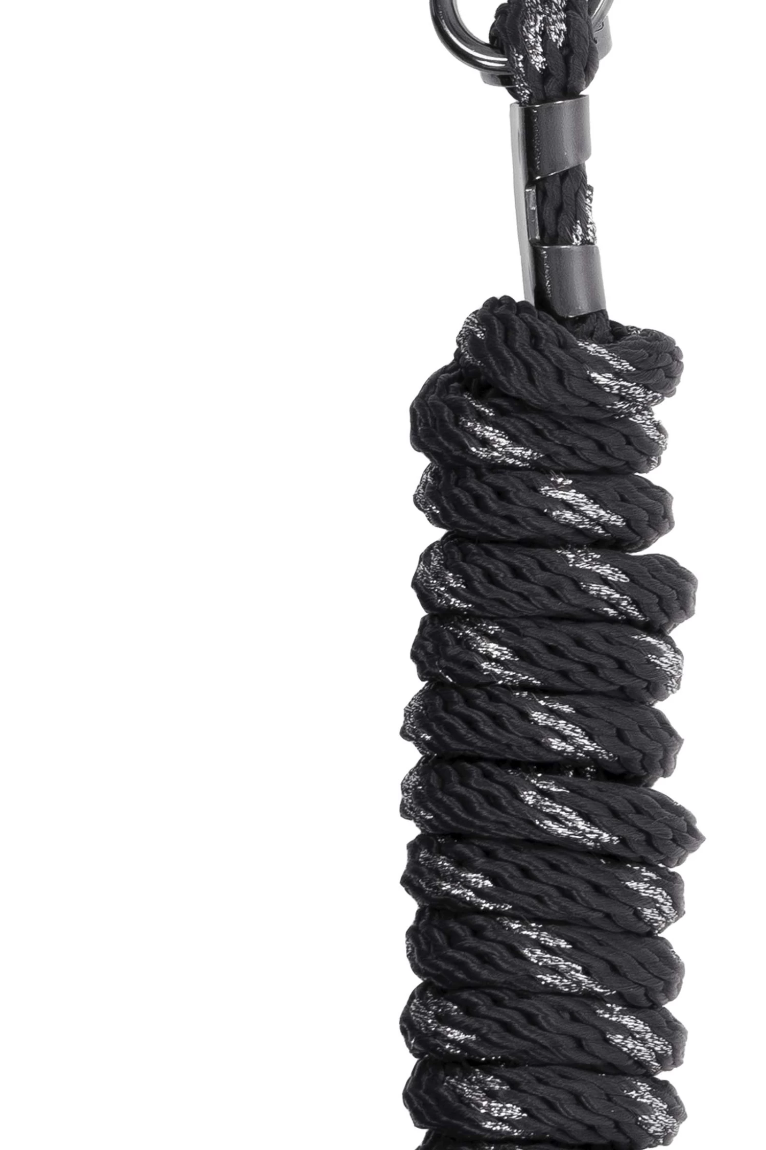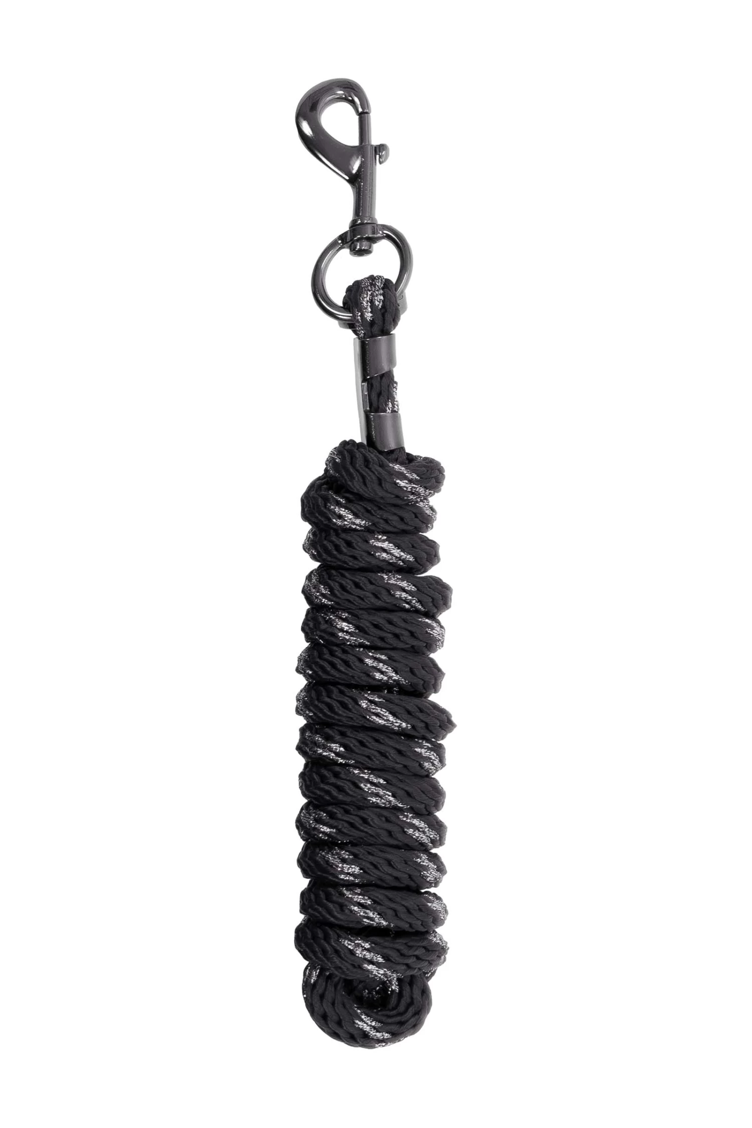 Lead rope with carbine hook and decorative new metal plate with milled, silver Cavallo logo. All metal parts in gunmetal optic. Plain, interwoven with silver shimmering stripes in metallic look. The special weave enables a firm grip. Length approx. 2,20 m.