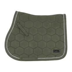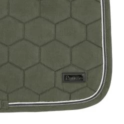 All over with a diamond quilting. The saddle pad is framed with three narrow cords in subtle contrast. A small Cavallo metal label in gunmetal optics adorns the back of the saddle pad. The quick-drying and moisture-transporting mesh lining is particularly skin-friendly and offers maximum comfort. A shape-retaining padding allows the saddle pad a perfect positioning on the horse’s back. The upper and lower girth straps can both be fixed with hook and loop fasteners.