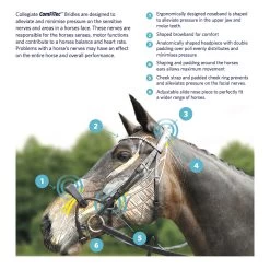 - Double padding over poll area minimises pressure and shaped padding around the horse’s ears allows for maximum freedom and comfort