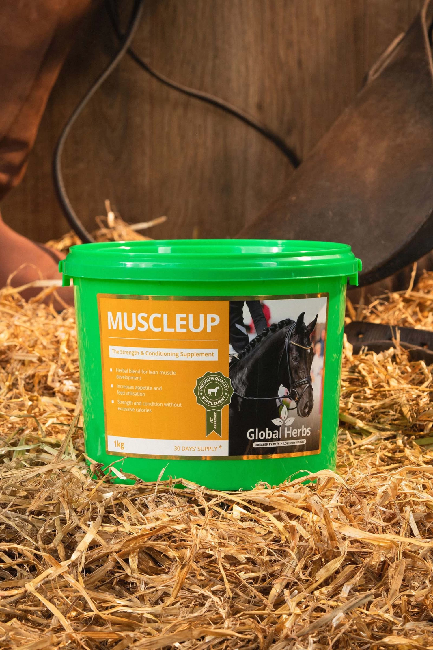 MuscleUp uses a traditional formula to help horses build muscle and topline quickly and easily. This advanced nutritional supplement helps support digestion, increase food conversion and maintain muscle development. Ideal for shows, dressage or daily use. Do not use on pregnant mares or mares intended for breeding in the near future.