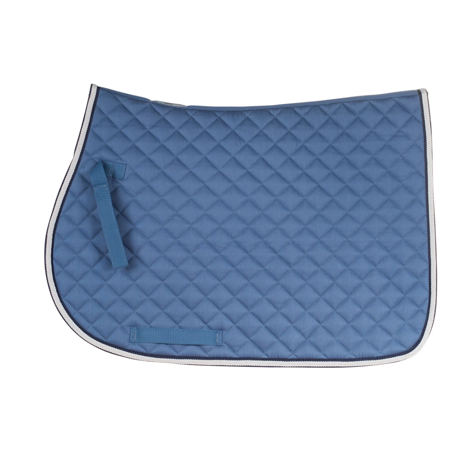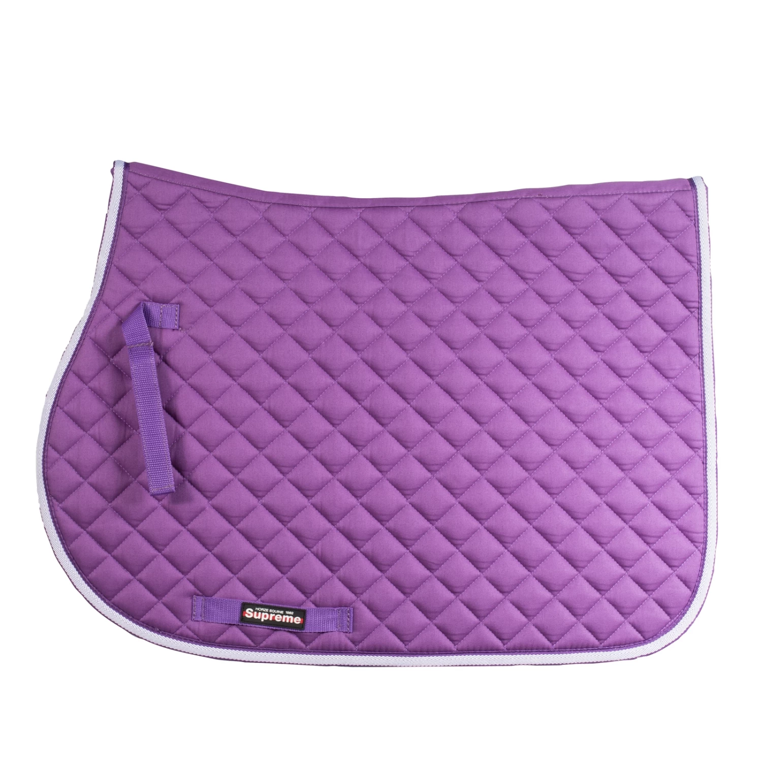 This all purpose saddle pad is the perfect choice for training. It’s classic style and shape make it a longlasting choice. It comes in the season’s popular colors and includes hook and loop fastener attachments to keep it in place. The lightweight foam filling in this diamond pattern saddle pad gives just enough support while you ride. The contrasting colored piping on the Horze Supreme Chooze All Purpose Saddle Pad is sporty.