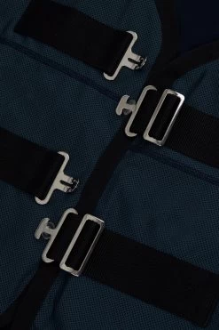 The Horze Mesh rug is made from cooling material that offers ventilation on hot days. Soft faux fur at the withers and lining at the shoulders add comfort. Double t-buckles, X-surcingles, and tail strap keep this rug in place. Logo tape along the spine adds a sporty touch.