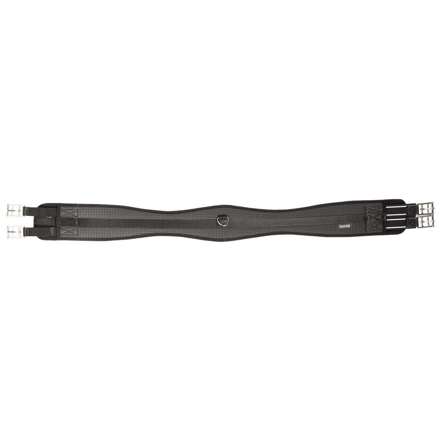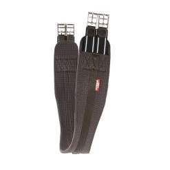 The contoured design of this soft, webbed all purpose girth offers ultimate comfort and durability. The elastic side, stainless steel roller buckles and center D-ring provide convenience and quality. The fabric is easy to clean and will maintain its great looks with minimal care.
