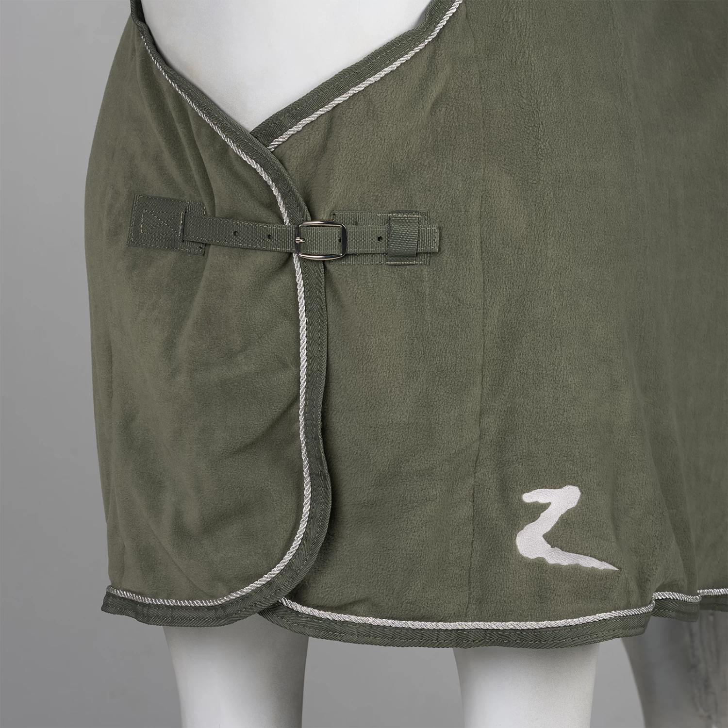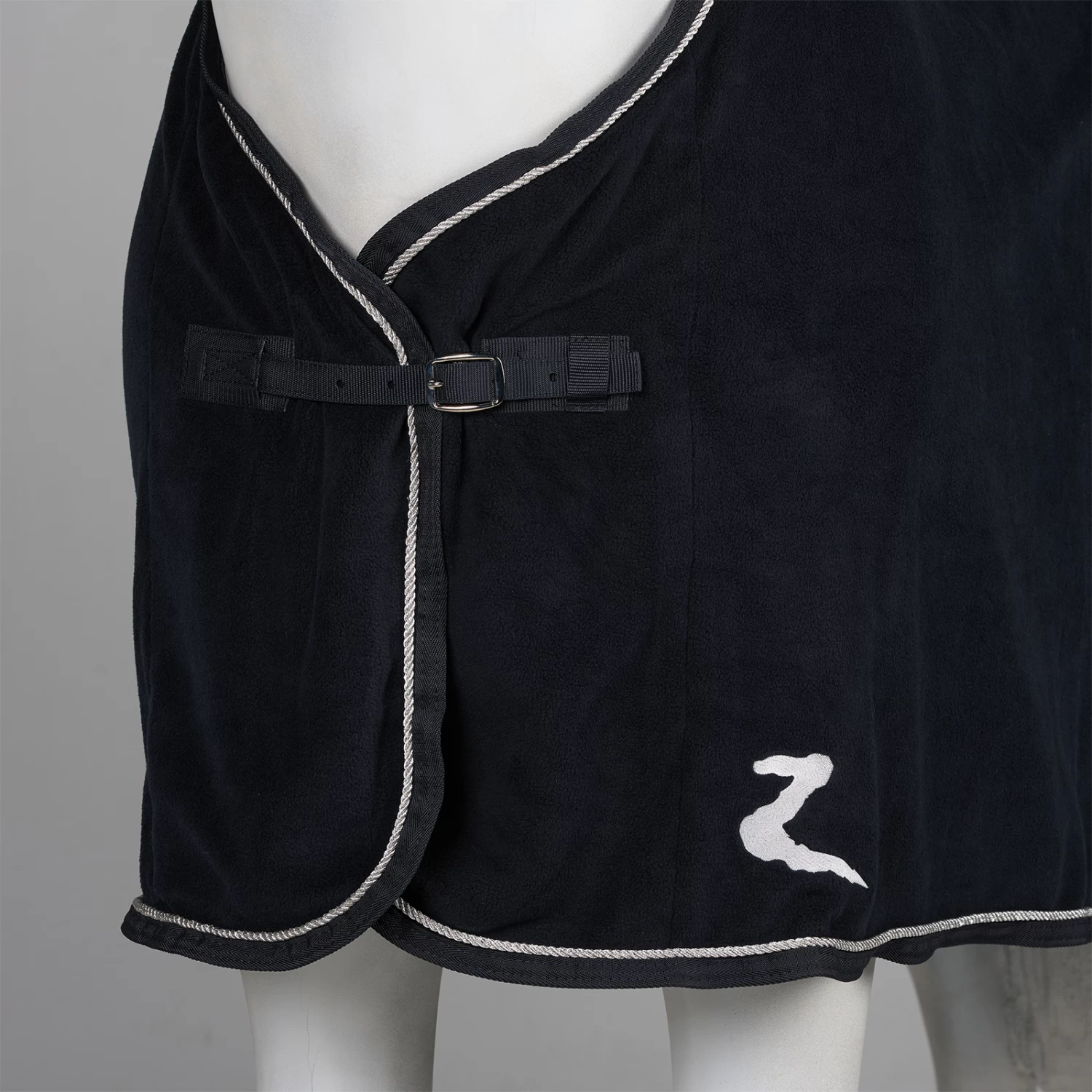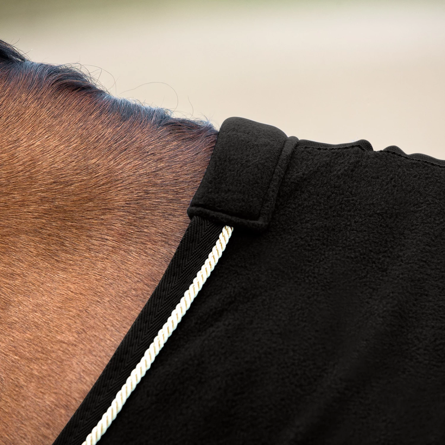 A dress sheet is a must-have item for the show ring and the travels to and from. This fleece cooler with its rich piping and cording along the trim offers a classic look without breaking the bank. The sheet will keep your horse chic while reducing chill. Use it alone or while keeping your tack fresh and clean while waiting for your turn in the ring.