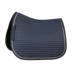 The Horze Glarus saddle pad is lined with quick-dry fabric that wicks away any moisture. Square quilting provides padding beneath the saddle. Braided rose gold piping runs all the way around the saddle pad, bringing a little bling to your tack. Combine this saddle pad with our Horze Glarus ear net for a full look!