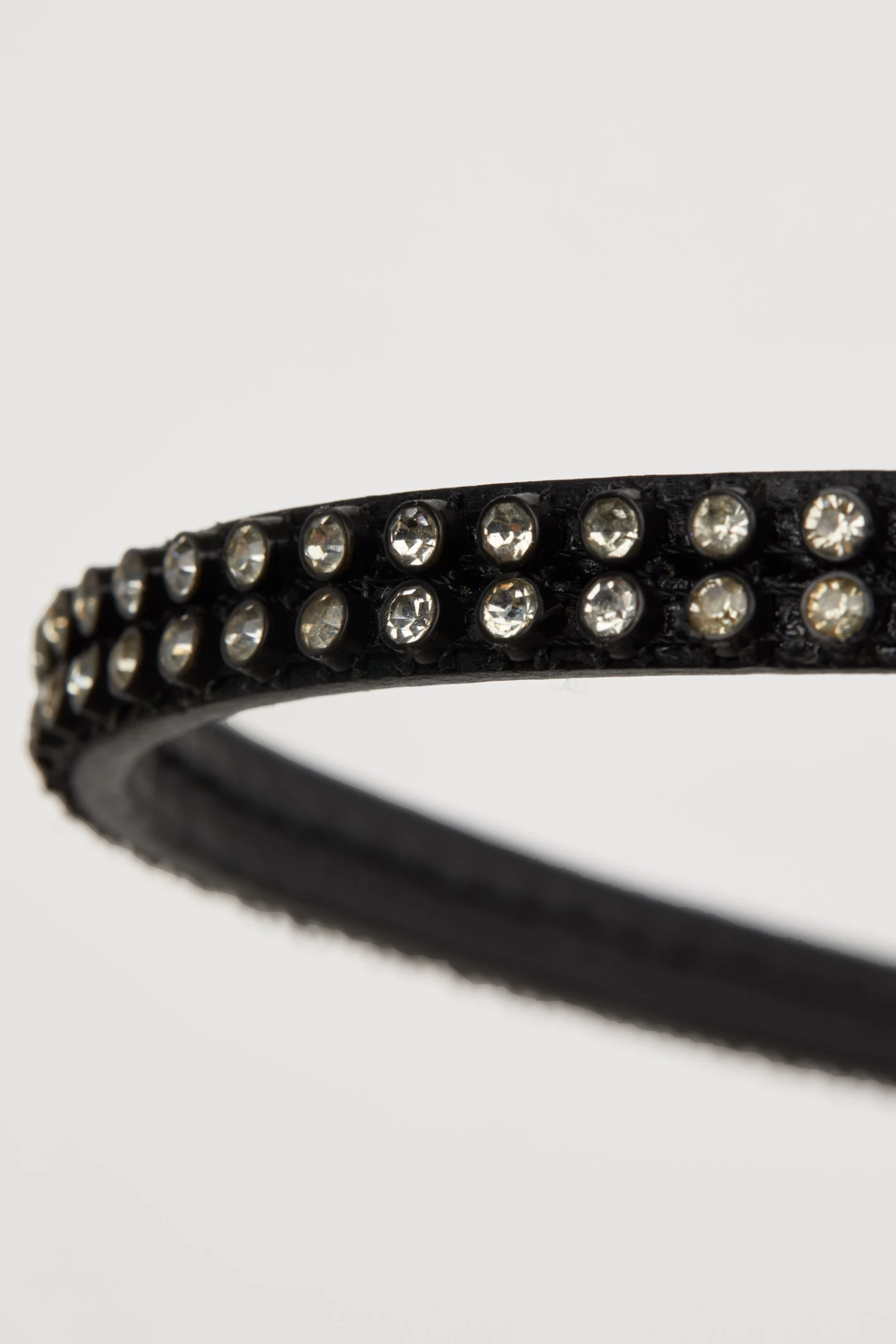 This Horze bridle is made from smooth leather that comfortably adapts to your horse’s head. Adjustable buckles ensure the perfect fit. The bow shaped brow band is decorated with shiny crystals, adding a touch of elegance and glamour to this bridle.