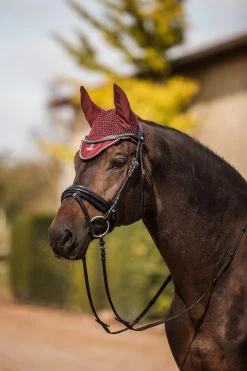 The Horze Leighton ear net is made from soft crochet. Elastic ears keep your horse attentive. The deep front and multicoloured trim look chic, and the logo with embroidery complete the Scandinavian look. Combine the ear net with the rest of our Horze Leighton teens collection for a full set!