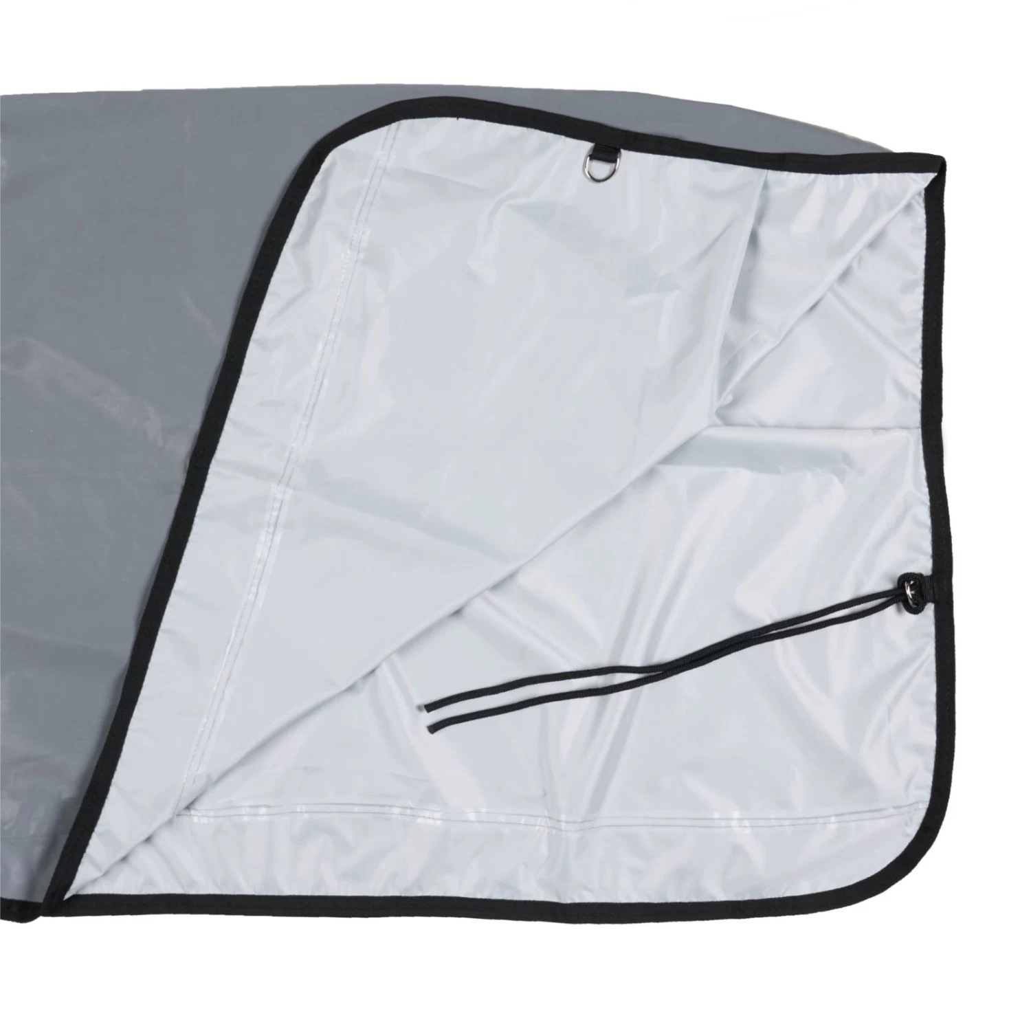 This reflective riding rug makes you and your horse visible when you are on a ride in the dark or in gloomy weather. The fully reflective material looks grey when no light enters. A detachable neck and hook-and-loop fasteners make it easy to use. Water repellent qualities keep you safe and dry in rainy weather.