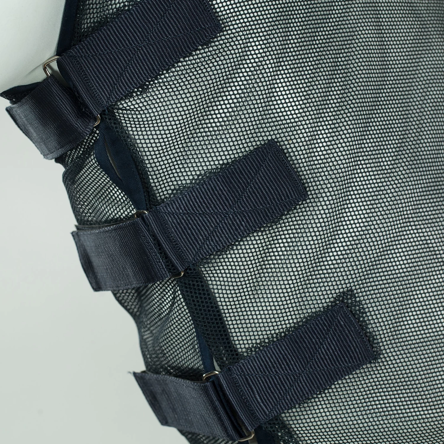 Ride in comfort without the nuisance of pesky flies bothering your horse with this nice lightweight riding fly sheet. The quarter sheet is designed to protect the loins and hindquarters as well as the neck area while not interfering with the horse’s freedom of movement.