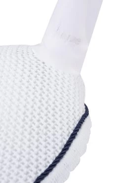 Keep pests away with this tightly woven crocheted fly veil. This ear net will keep those awful flies, gnats, and no-see-ums out of your horses’ ears. This is also useful if you use cotton balls for muting noise on a sensitive horse. Two cords at left ear make for easy attaching.