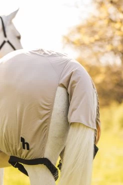 This Horze Sweet Itch Rug offers great protection both against flies and the sun as it covers the whole body except the legs and will make for a calmer, happier horse. Use with the matching Fly Mask sold separately (item # 22812) for complete protection. This rug is like a suit of armor for your horse to protect against the blood-thirsty flies of summer. The fabric is lightweight yet breathable to keep pests away while allowing air to circulate and your horse to graze in peace. The full neck attaches to the halter and if you complete the look with the optional fly mask, your horse will be completely protected from nasty summer bugs.