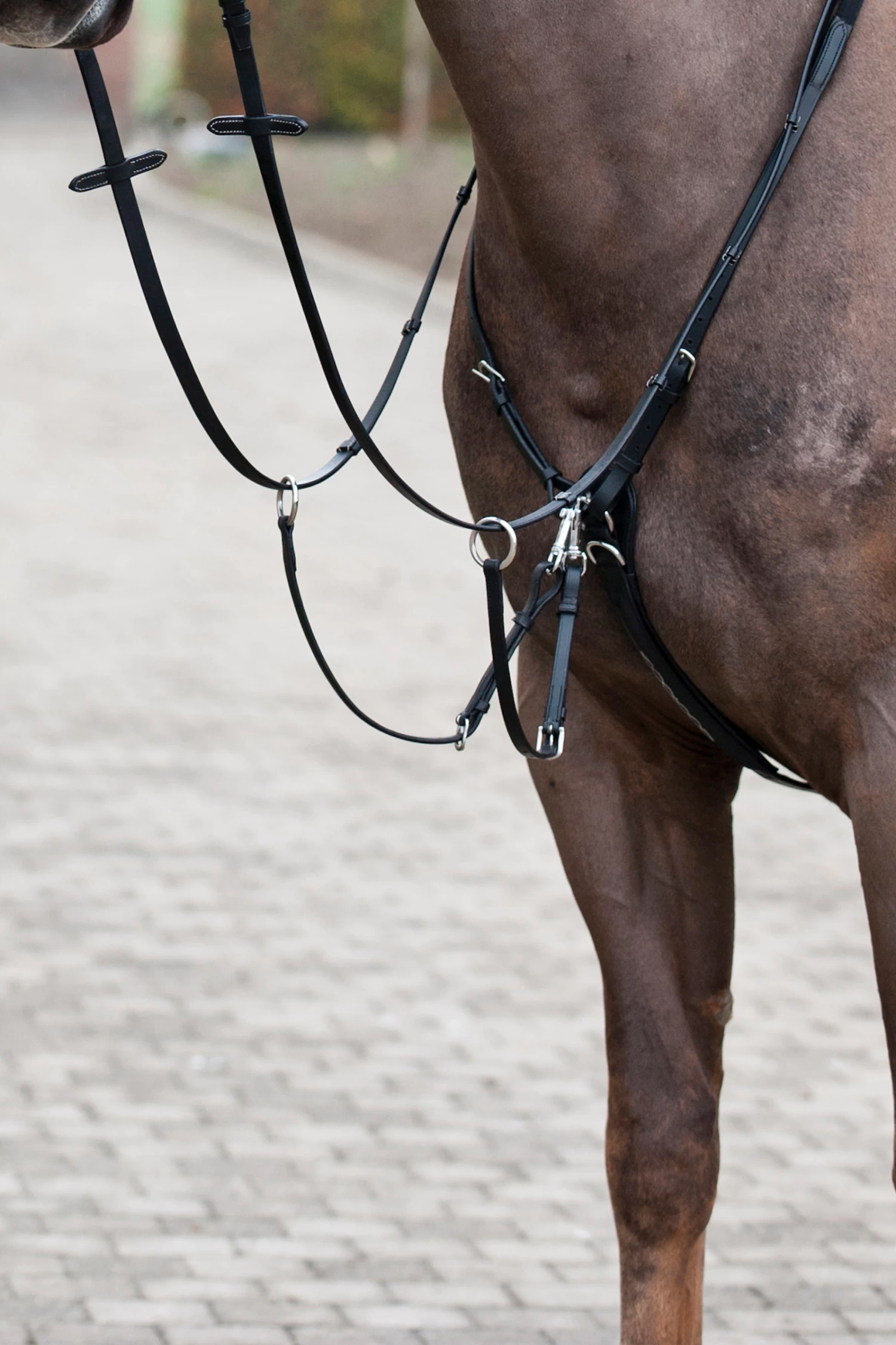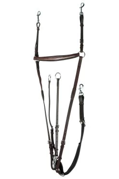 Choose an easy to use running martingale and three point breastplate with this high quality combination. Your saddle won’t shift and your horse will keep his head and neck steady while using this quality combo piece. Made of leather with snap hook attachments for easy removal.