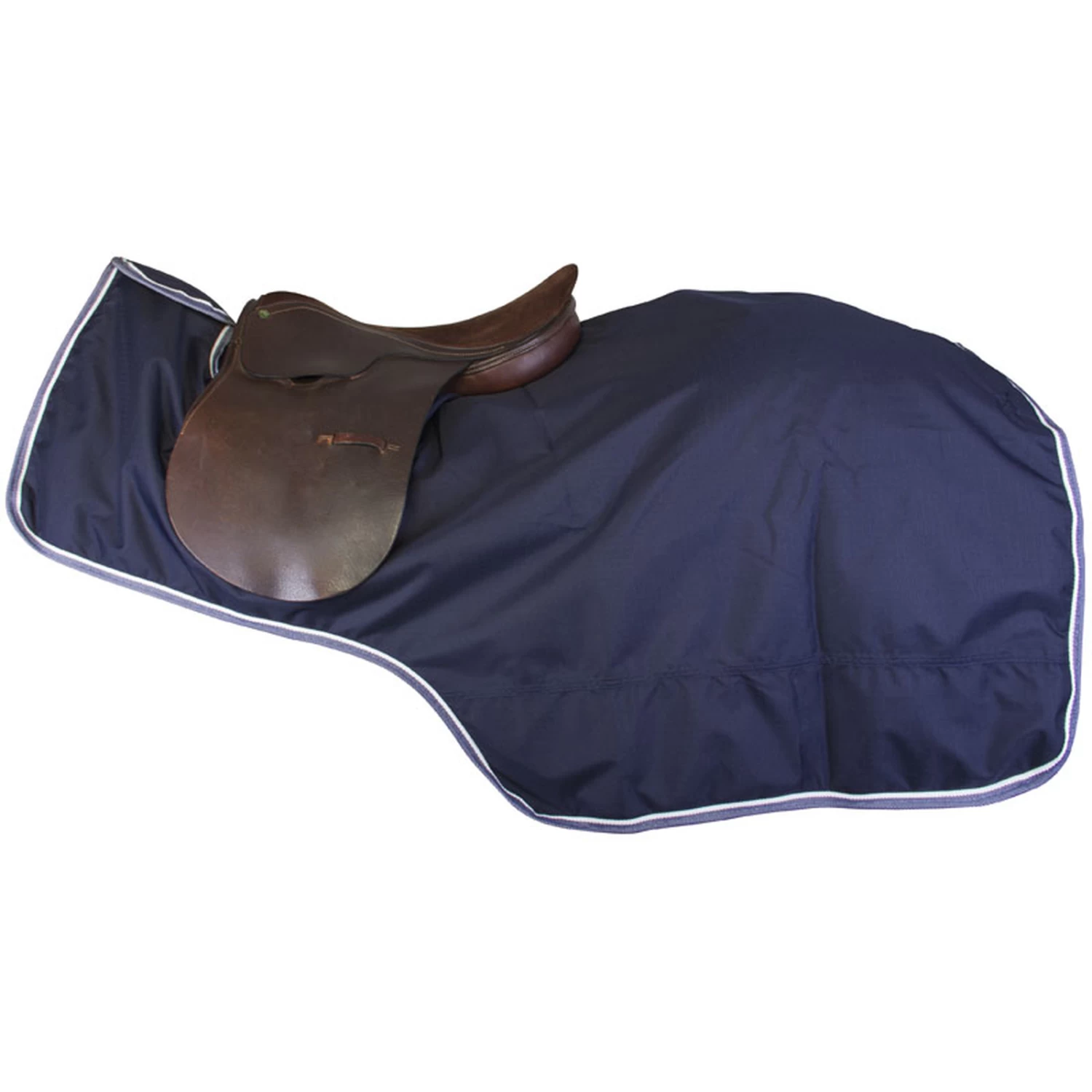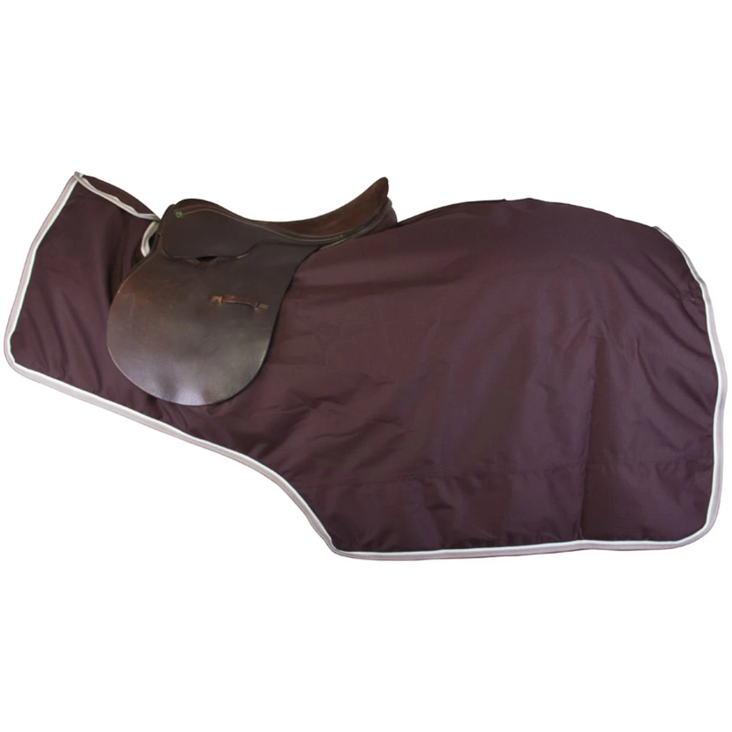 IR Basic outdoor exercise blanket 0 grams filling, with cut for saddle, hook and loop fastener on the withers and tailstrap. With fleece lining.