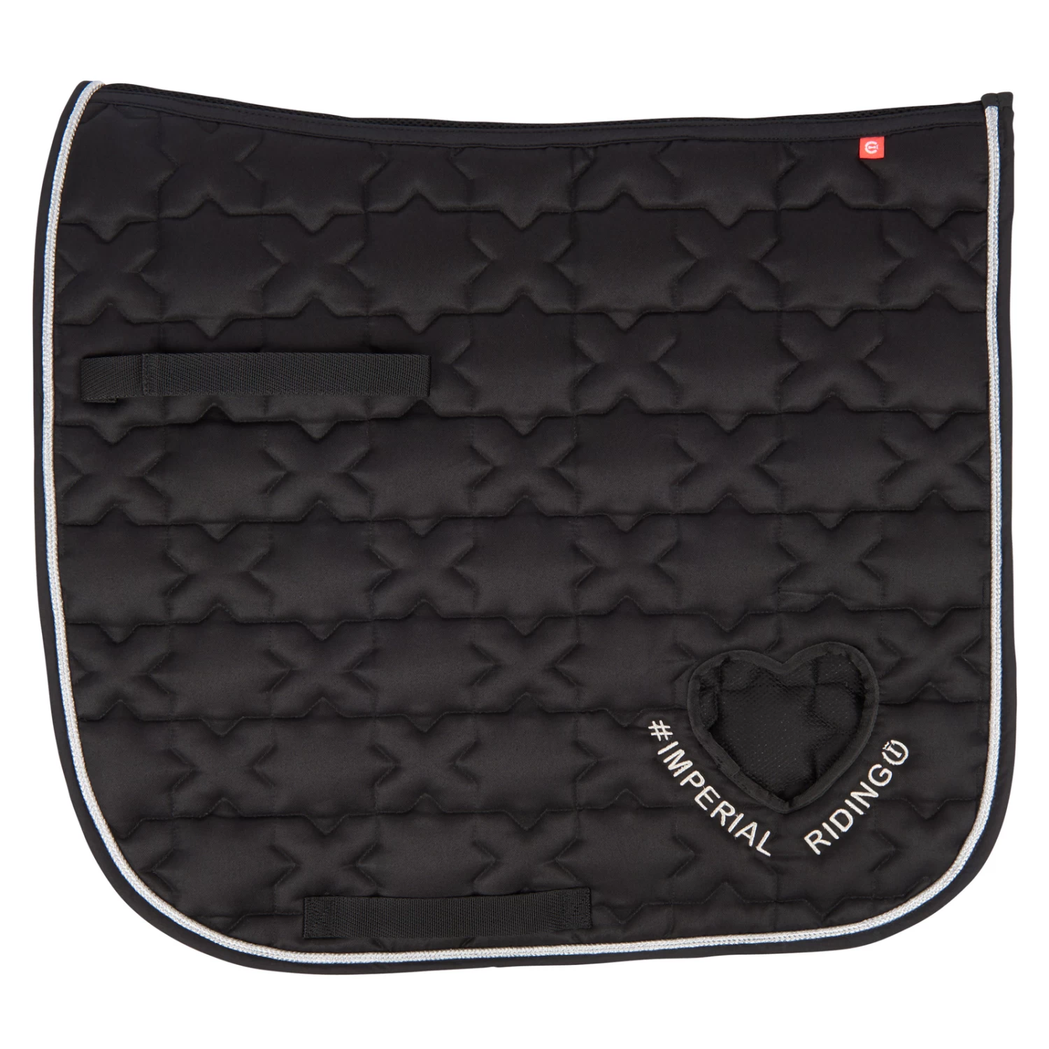 Fashionable “Symbol” DR saddlepad by Imperial Riding. Owing to the quilting procedure, this saddle pad sits well and securely under the saddle, and it protects your horse from pressure and chafe marks even in high-intensity use. The high-quality “Symbol” saddlepad by Imperial Riding does exactly that – and it looks trendy at the same time! With trendy X-quilting, interesting embroidery details, and a cool contrast-coloured edging, this item will leave an excellent impression. The nice and soft padding means additional, comfortable wearing for your horse. Durable, tasteful, sporty, and professional – a great equestrian accessory all round!