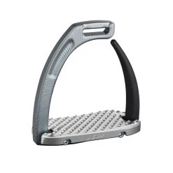 The Air safety is the perfect combination between safety, unique design and comfort. Its new structure, equipped with a part of the external arch in flexible material, allows the easy exit of the foot in case of need, still guaranteeing perfect lateral support of the foot thanks to a truncated cone design. It automatically returs to the initial position without causing structural changes. The anatomical pad also provides more stability and with its ergonomic shape helps to maintain the correct posture of the body while it is in the saddle.