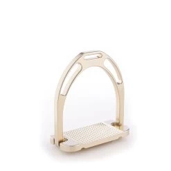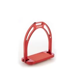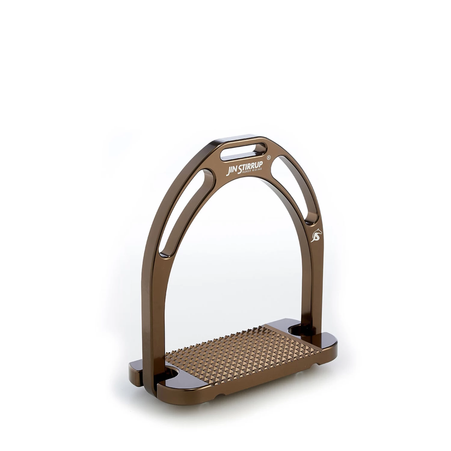 Jin Stirrup stirrups stand out for the revolutionary design and the use of a material to the vanguard like the aluminium. The aluminium allows us to produce a stirrup with a maximum weight of 300 grams, one of the lowest in the category, without compromising you security in any way.• The Jin Stirrup stirrup offers a “grip” without comparisons, thanks to the special “diamond” manufacturing of the bench support area and to generous surface.• Both the large form and the particular grip of Jin Stirrup give an higher sense of stability which creates an “all one” with your foot.• Jin Stirrup stirrups are obtained by certified sky-high quality aluminium, worked with sophisticated CNC machinery.• Colourings obtained with the anodizing process give the product an effective protection from the corrosion and, for last, offer the possibility of choosing between a colour full range.”