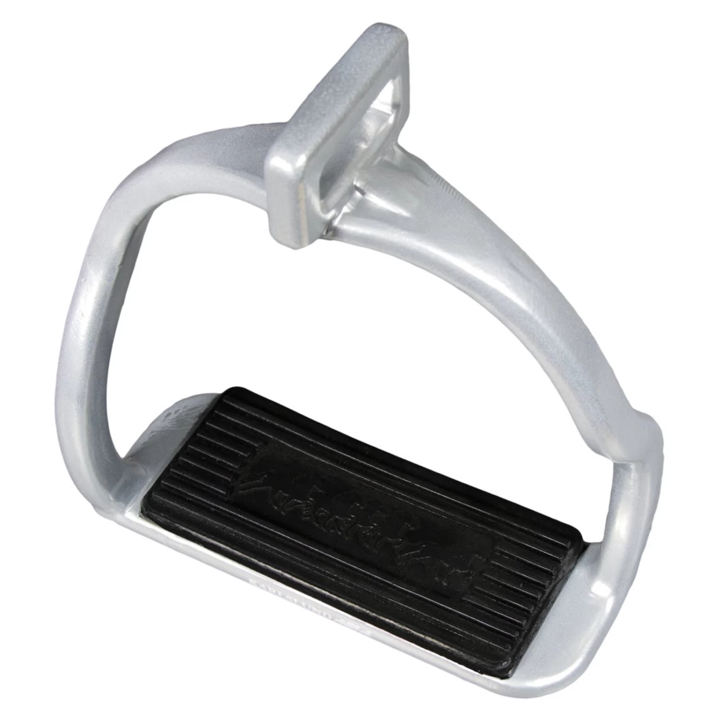 Double-S safety stirrups in aluminium. Rubber pads with tölting horses. Simple elegant design, with low weight.