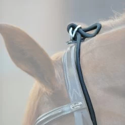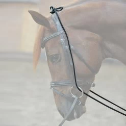 When Bungie in universal size are reins of fully elastic material.The piece of leather to adjust lies on the neck of the horse. The elastic band is pulled through the rings of the bit and fixed between the front leg of the horse to the girth.The favorable Kavalkade Bungie has an excellent quality and a perfect fit.