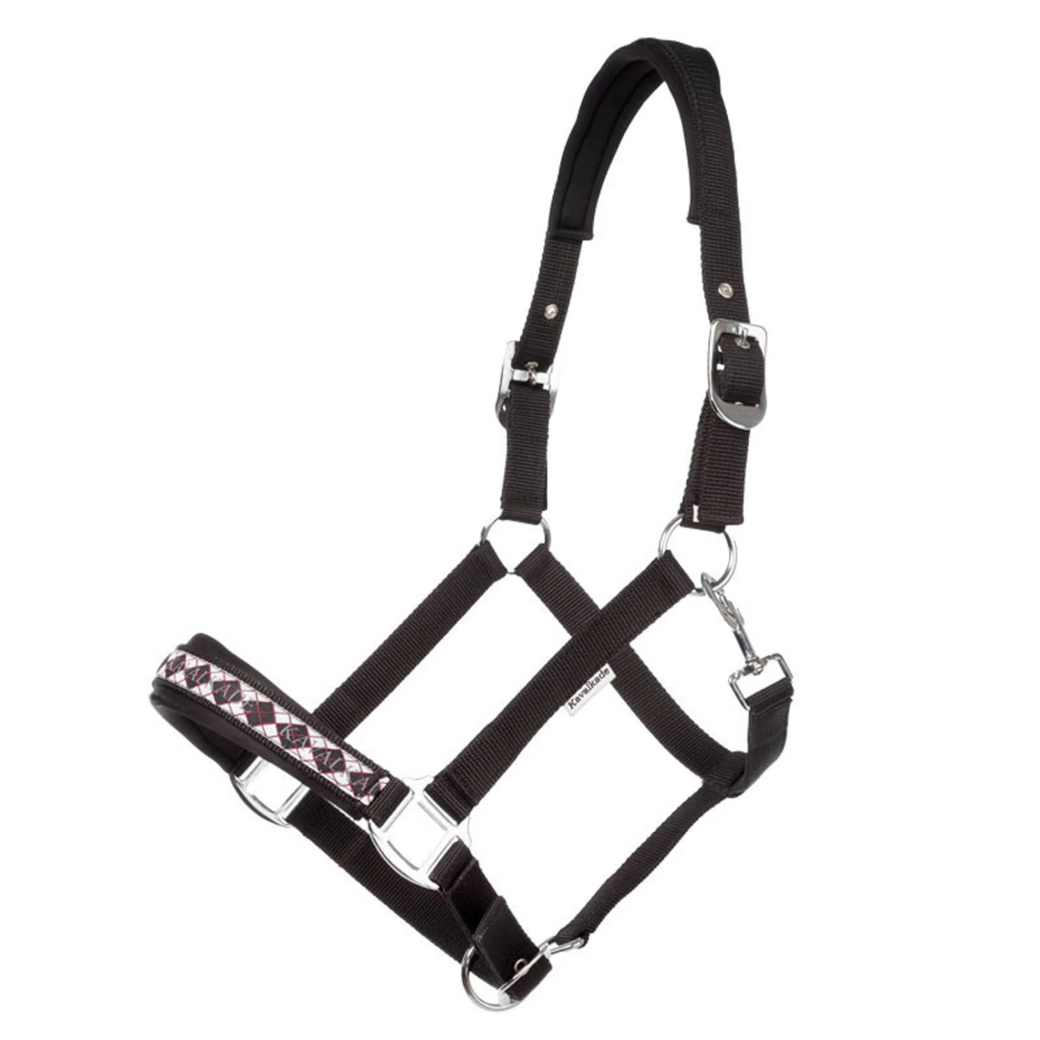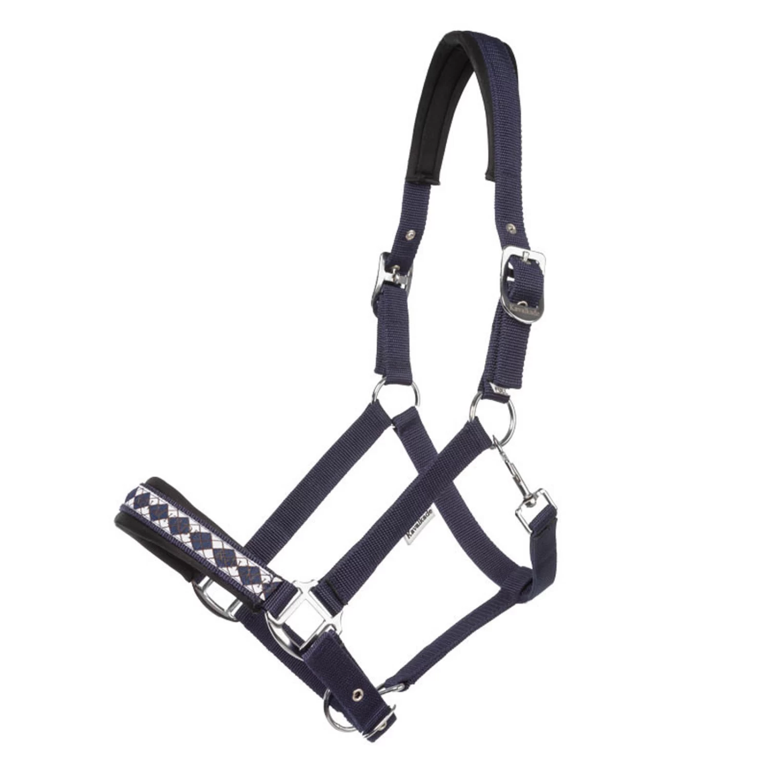 The noseband in check design is colour-coordinated and padded. The neck and nose are softly padded. The halter is adjustable on both sides.