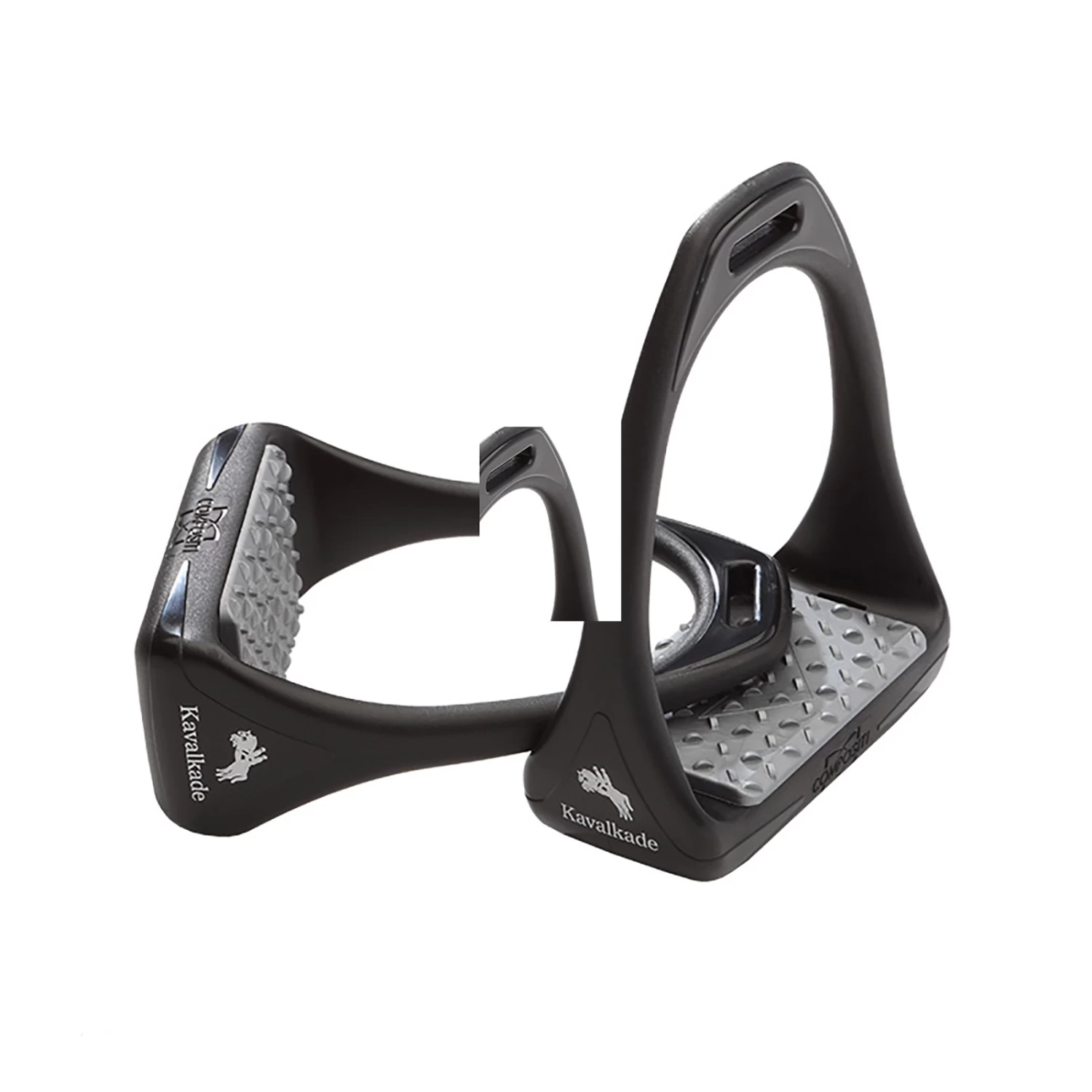 The Kavalkade stirrups ‘Reflex’ serve a wide, glass-fiber reinforced swing-tread. They rest on a shock-absorbing cushion which cushions shocks and reduces the tension in the knees and joints. The slim profile / body of it is specifically formulated, that the foot in an emergency can be quickly removed from the stirrup.