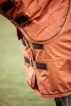 Because of the brown artificial leather piping and the artificial leather on the buckles this Turnout Rug All Weather has a very fancy look.