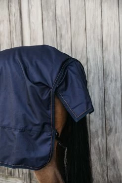 The neck piece is to be bought separately and is therefore detachable. The Neck Piece can be attached to the rug with the help of four strong Velcro fastenings and closed with two strong Velcro fastenings. The neck piece has 150 gr filling. The entire neck is lined with artificial rabbit skin to prevent rubbing the mane. Even the seam behind the ears is lined with artificial rabbit skin.