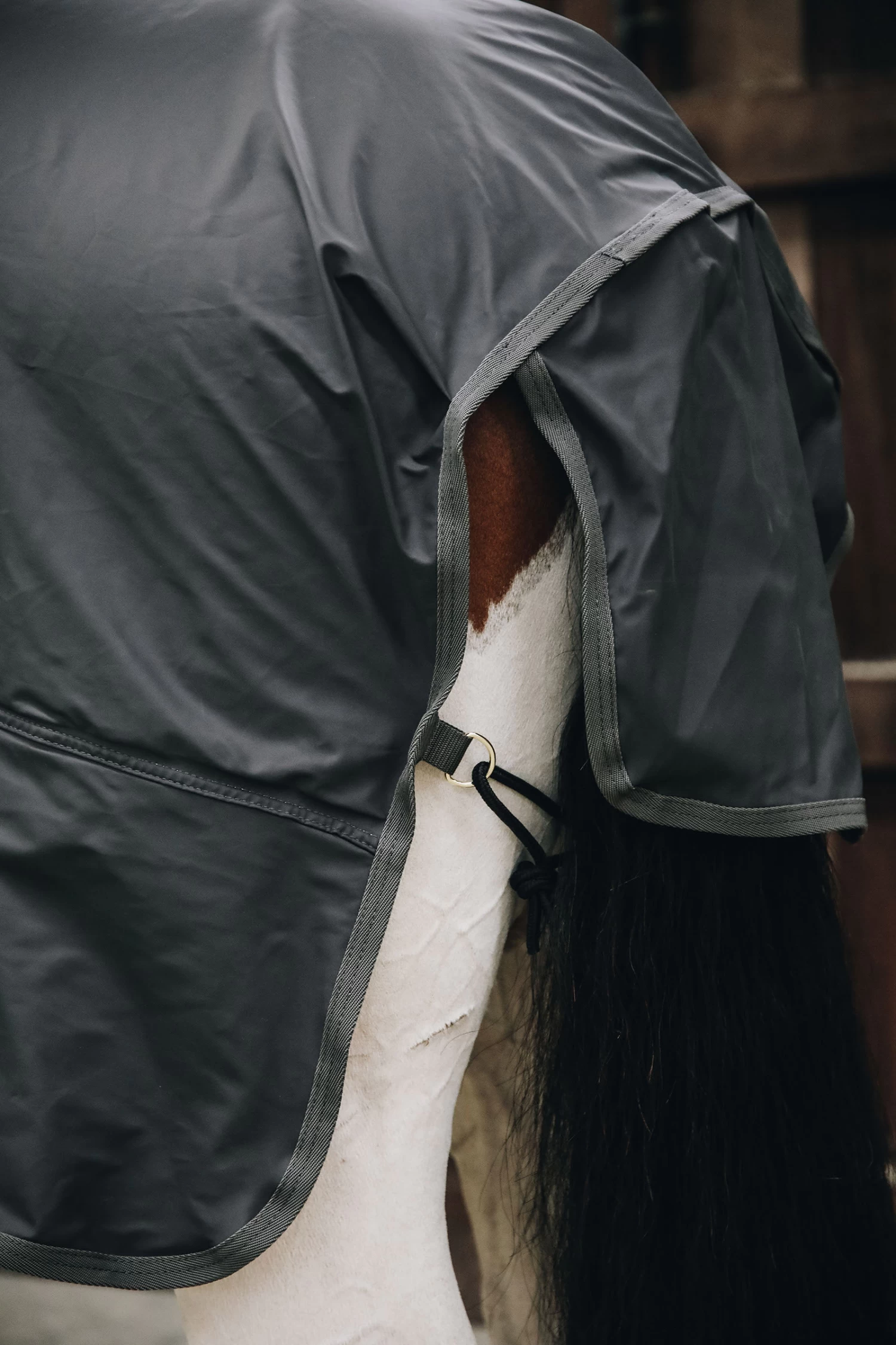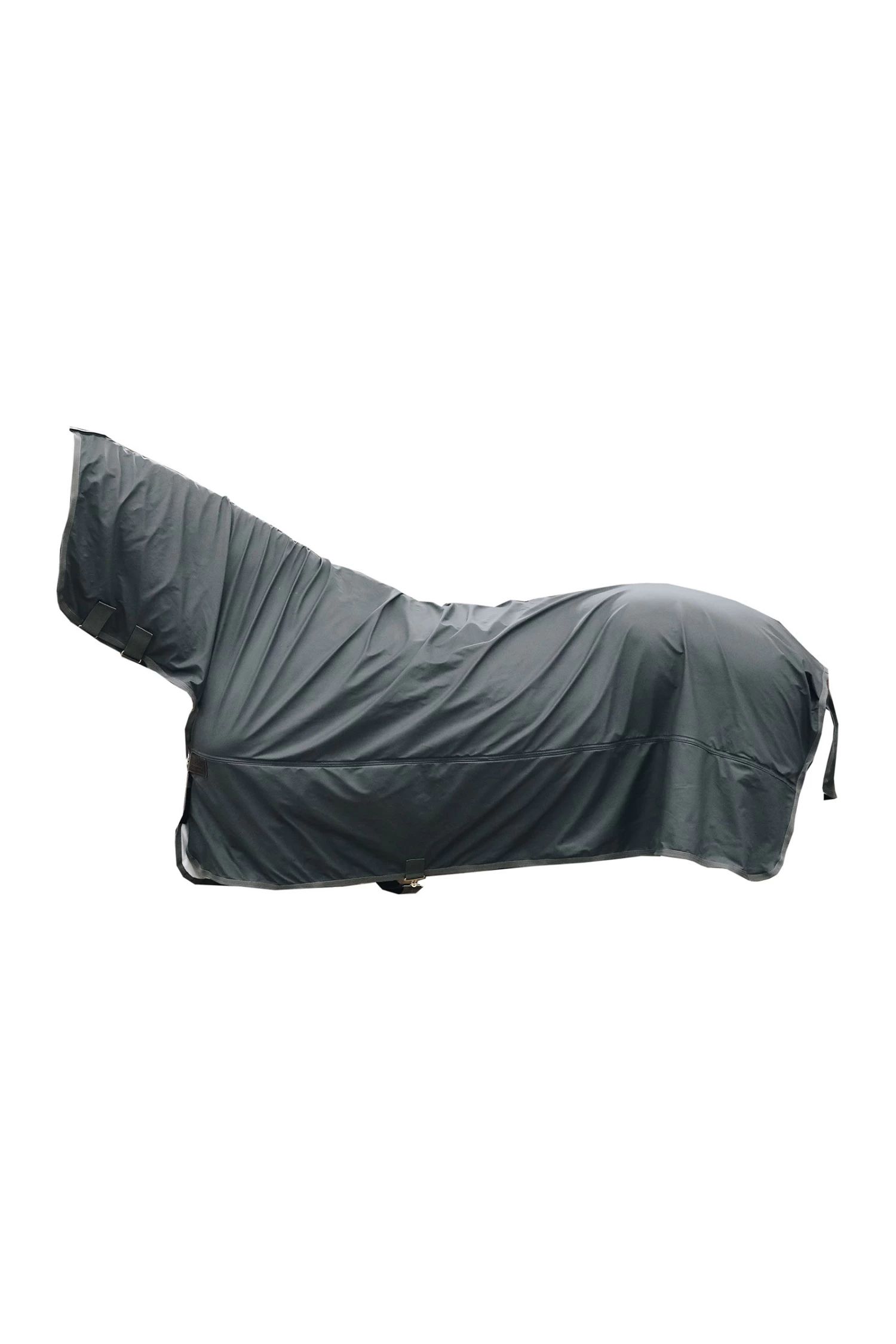 The Horse Rain Rug is the must have for every competition rider to protect his horse and his expensive tack against heavy rain. It is compact, lightweight and 100% waterproof. Easy to put over another rug or saddle while walking the horse on rainy days. The material is 100% Polyester with a PU coating on the outside and will guarantee your rug to be 100% waterproof. Small Velcro at the poll to attach the neckpiece to your halter or bridle. Velcro straps at the neck, a single front closure, a surcingle and tail cord will help to keep your rug in place.