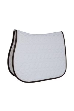 Thanks to a ​thin-layer​, our Saddle Pad provides excellent cushioning between the horse’s back and the ​saddle while protecting against friction. The micro-fibre material with ​ventilation holes​ is able to draw ​perspiration away to avoid muscles-overheating. The ​anatomic shape​ makes sure that the withers is free ​from pressure and friction. ​ ​The saddle pad doesn’t slip and has no annoying straps to attach to the saddle, only a nylon strap for the ​girth. The artificial leather edge of the saddle pad ensures a fancy look. Thanks to its ​special cut-design​ ​and original pattern, our Saddle Pad is used for jumping as well as dressage or eventing. Just as our Half ​Pad, this Saddle Pad sustains the ​washing process​ at 30° (no dryer).