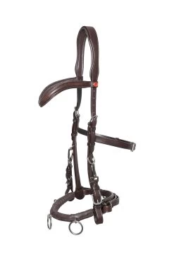 - Flexible roundly padded noseband with three rotatable rings and soft chin pad