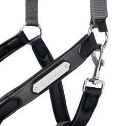 This luxury leather headcollar is beautifully crafted with soft leather, stong nylon and solid metal fittings for a high quality stylish finish. The wide, contoured, pressure relieving headpiece provides maximum comfort along with padded leather lined throat lash, cheeks and noseband.