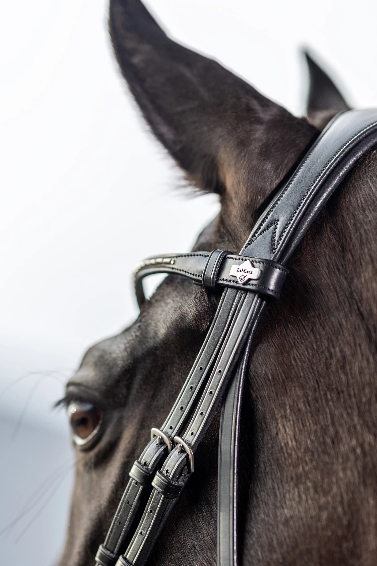 The LeMieux Dressage bridle is a classic example with a contemporary twist and is just made for the ring. The delicate, detachable clincher browband is anatomically shaped and complements the statement padded crank noseband beautifully.