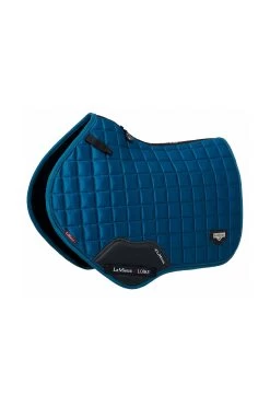 The textured pu leather girth protection area is complimented by an embossed logo and carries the usual signature LeMieux lower girth strap with its inner locking loops. The piece de resistance of the Loire Close Contact Square is its unique metal badge on a leather mount in the lower back corner