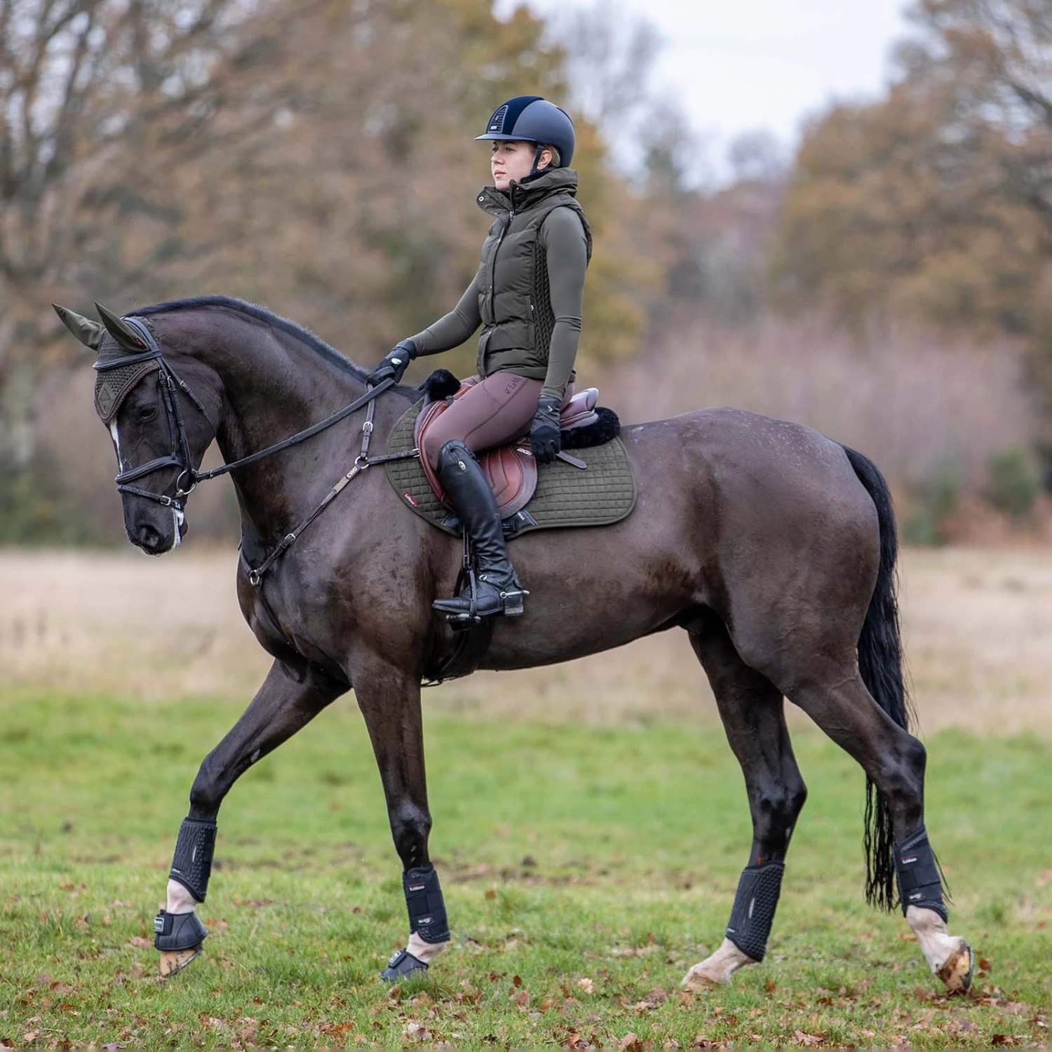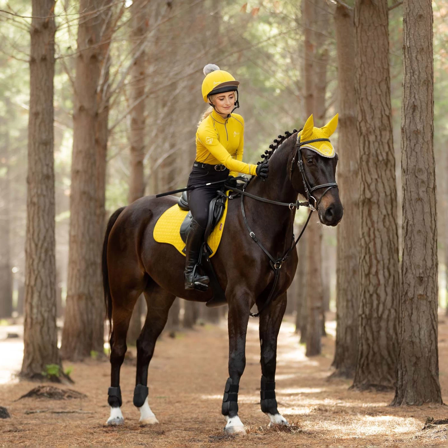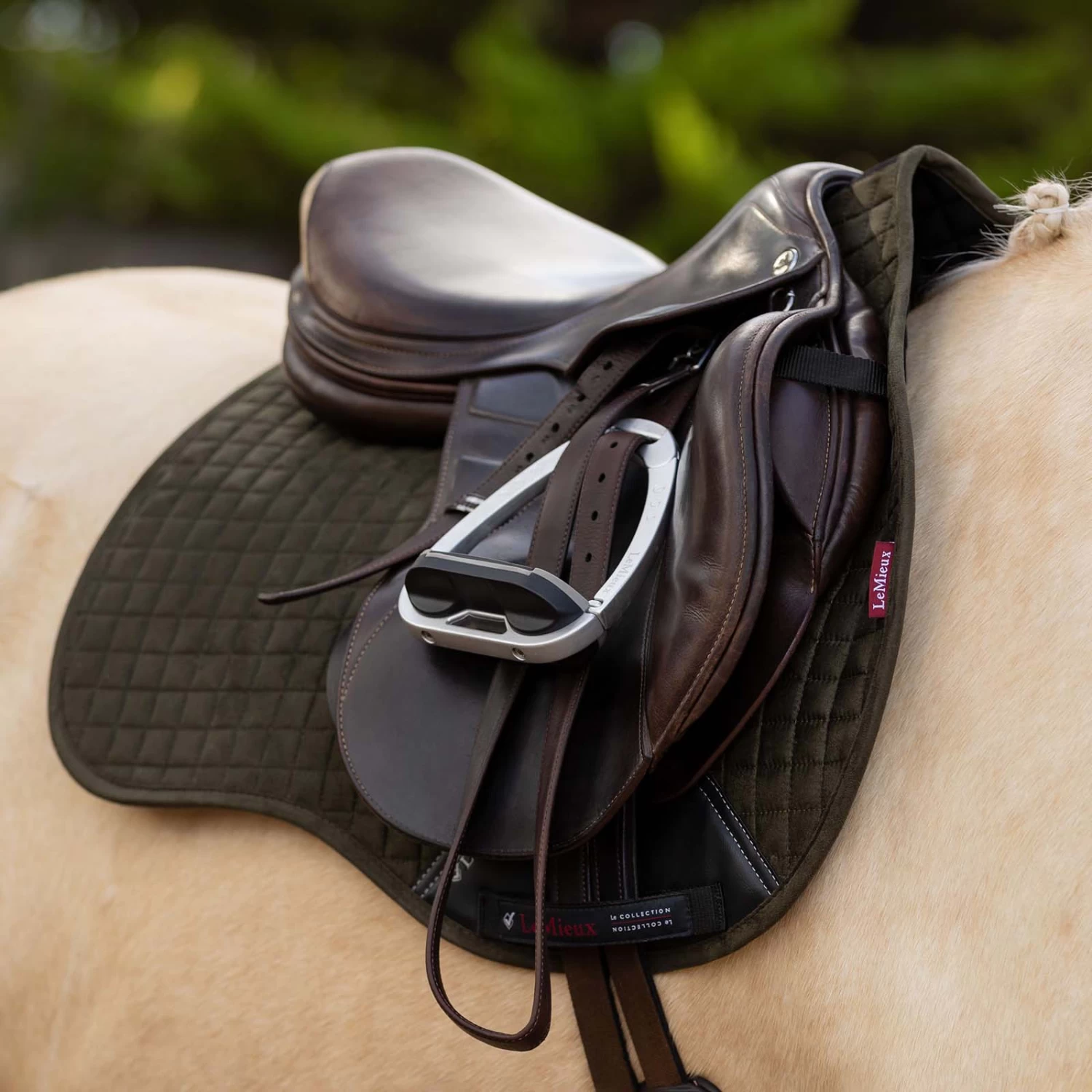 This great all purpose saddle pad sets new standards in style and comfort. With its high withers, standard long hook and loop straps and new PU leather girth protector, the saddle pad fits most eventing saddles. The luxurious suede top and new soft suede binding are complemented by a super soft bamboo lining that absorbs sweat under the saddle. In addition, the underside minimises friction and ensures the saddle pad fits well. Available in a range of colours to suit all tastes.