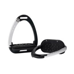The footplate is supported by a twin-balance arch system that distributes weight evenly across the base of the stirrup frame. The apex of the frame is recessed and offset, which promotes a 45º outward alignment, making it easier for the rider to find the optimum angle for the foot and retrieve a lost stirrup.