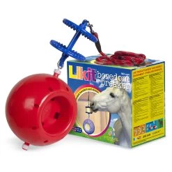 Smart combination of lickstone holder and play ball, which can be easily hung in the box or on the paddock. For meaningful occupation of the horse – to reduce boredom and stress. Suitable for two Likits of 250 g and one Likit of 650 g. Delivery without lickstones!