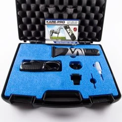Kare-Pro 100 one blade – Brushless clipper with internal battery. Kare-Pro 100 is a quiet, powerful, cordless clipper containing Liveryman’s unique brushless motor technology with 10,000 hours life-time. The lithium internal battery provides up to 2 hours of clipping. Kare-Pro 100 is ideal for use with nervous animals. It is extremely quiet and verstaile, giving up to 10,000 hours lifetime. There are no mains wires, so the clipper can be taken into any environment. An all round powerful, reliable clipper.