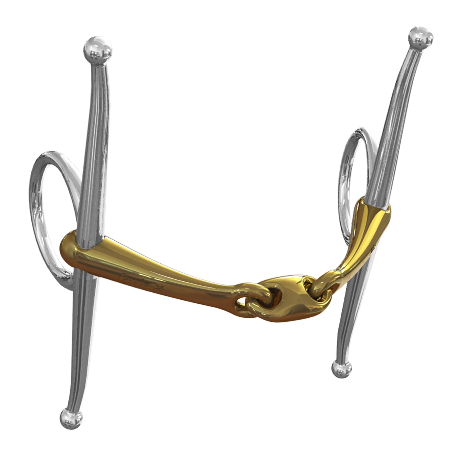Excellent for directional control and tight turns during faster work as the mouthpiece will not slide across the mouth when turning. It is also safer for young horses, especially when introducing to road work, as it should not pull through the mouth in a panic situation. Highly beneficial for children or novice riders who may not be sufficiently experienced in supporting their inside rein. The upper cheeks may be fixed to the cheek pieces with Fulmer Loops in order to stabilise the mouthpiece. Salox Mouthpiece, Stainless Steel Cheeks, Double Jointed Full Cheek.