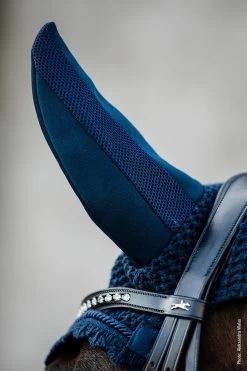 If your horse is very sensitive to noise and finds it difficult to relax during training, the Air Silent fly hat presents a solution. The ears of the crocheted cap are made of soft neoprene that absorbs ambient noise. This makes it easier for the horse to concentrate on the rider and it is not easily distracted anymore.