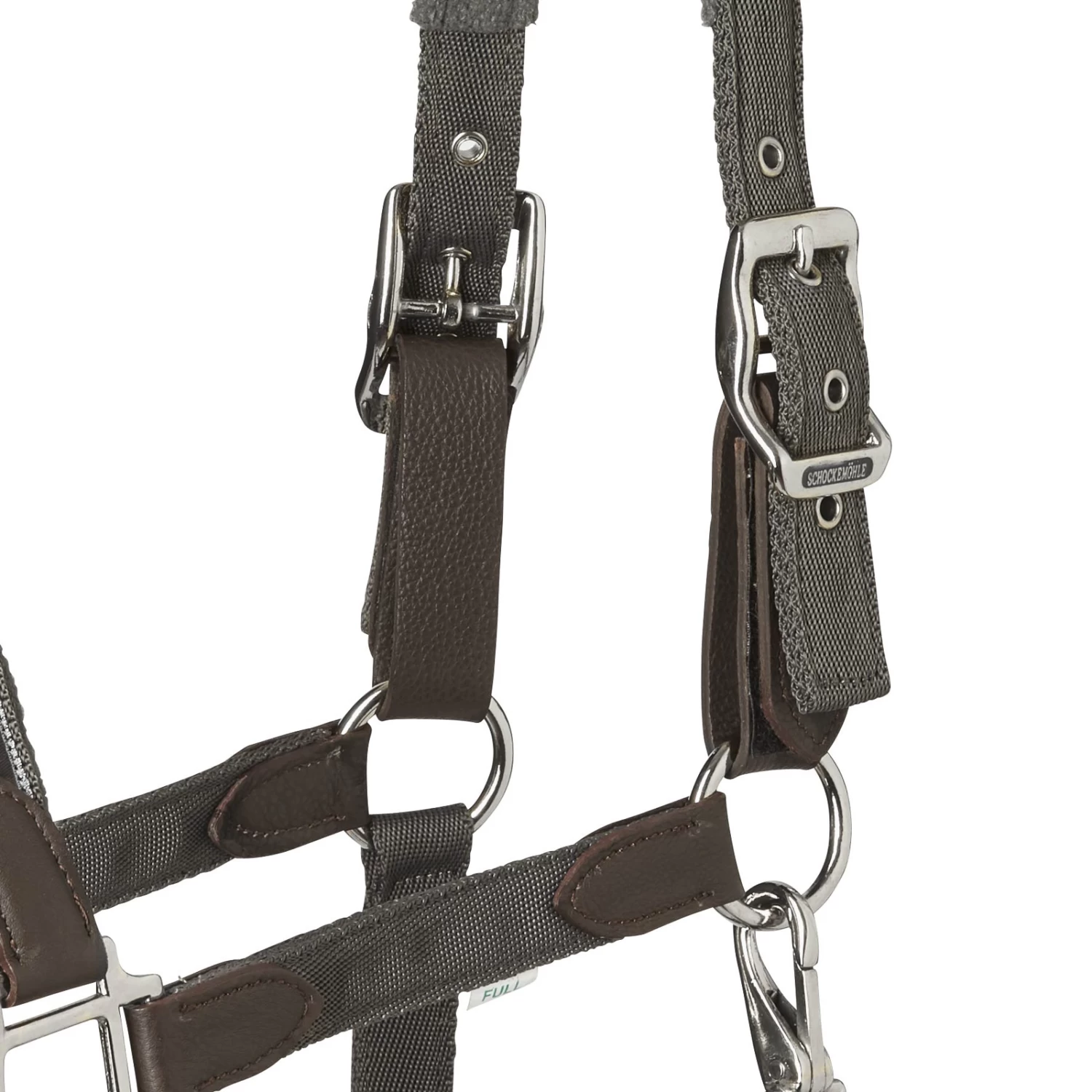The halter Memphis Saftey Style consists of a fashionable nylon-leather mix. Head piece and noseband are padded with soft fleece and provide extra comfort. Trendy detail: the woven label on the noseband.